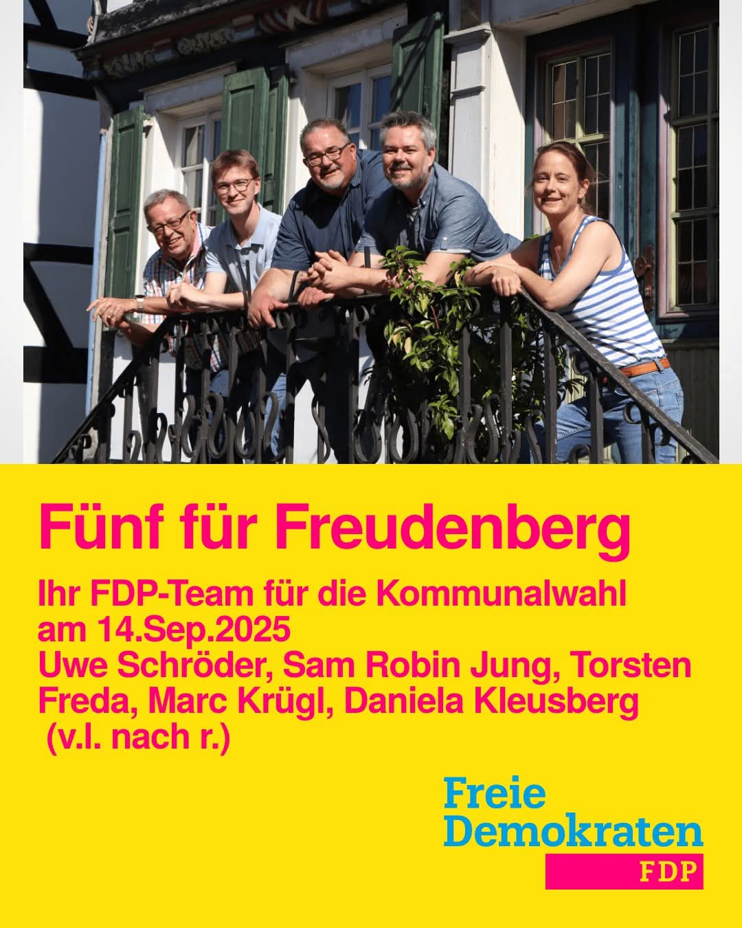 „Fünf für Freudenberg“ zeigt unsere ersten fünf Listenkandidaten, die bereit sind, sich für Sie einzusetzen.