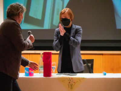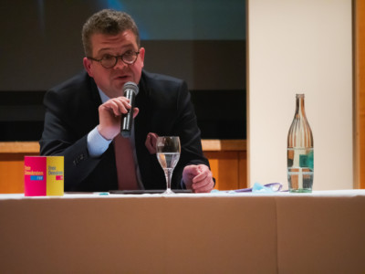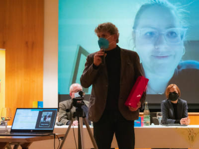 Das Podium, insbesondere auf die beiden MdB´s bezogen, welche jeweils dem Lager der Impfpflichtbefürworter bzw. der Impfpflichtgegner zuzuordnen sind, wobei alle Podiumsteilnehmer sich für das Impfen aussprachen.