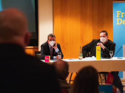 Das Podium komplettieren die beiden Abgeordneten Katrin Helling-Plahr, MdB, aus Hagen und Katja Adler, MdB, aus Oberursel (im Hochtaunuskreis).